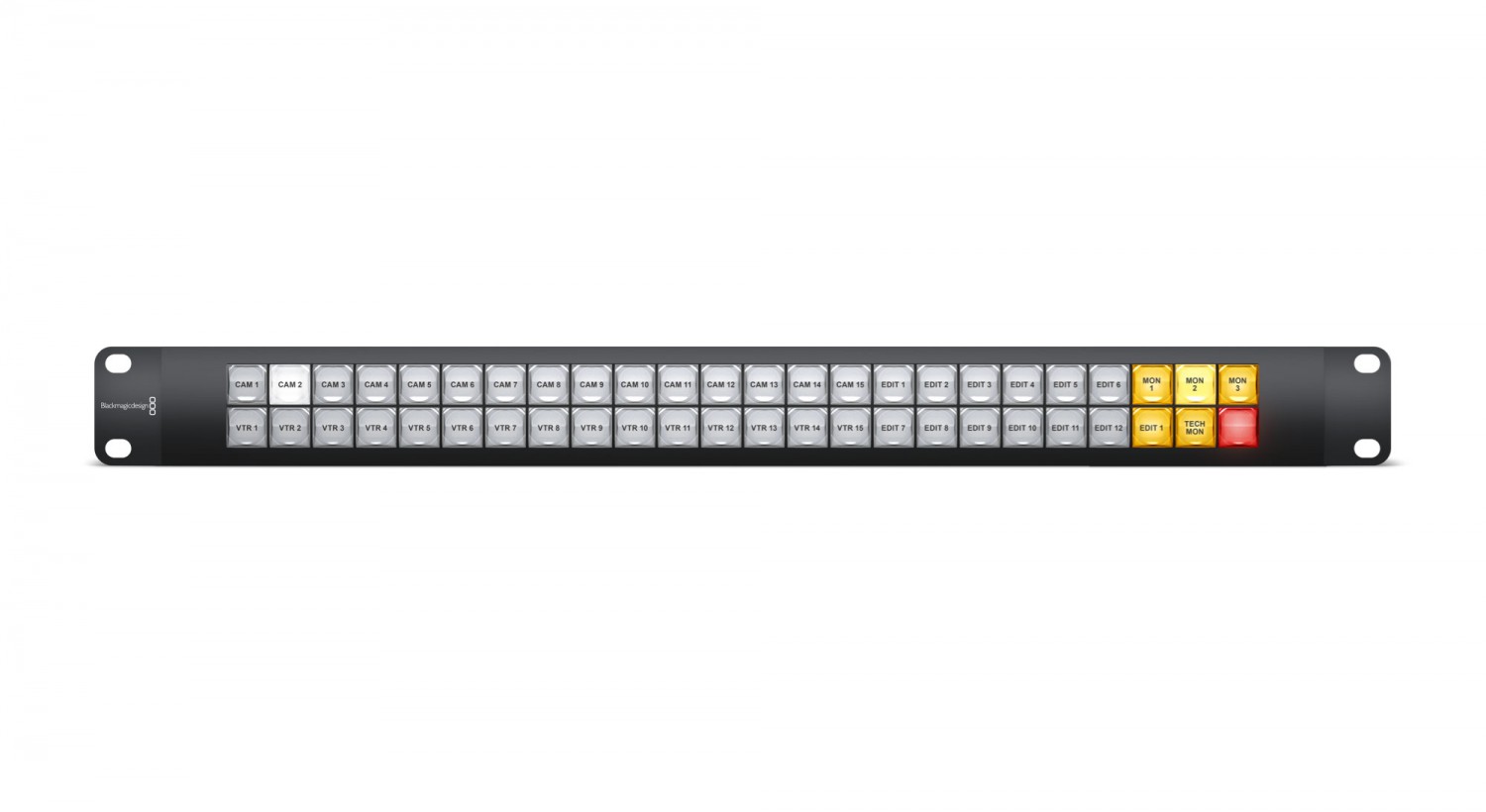El Videohub Smart Control Pro es un panel de control compacto (de 1U de altura) para los routers Videohub, que se conecta a través de una interfaz Ethernet. Ofrece 48 botones totalmente configurables que permiten cambiar rápidamente entre fuentes de vídeo. Se puede configurar para uno o varios destinos y controlar así el enrutamiento de la señal de vídeo hacia varios monitores, grabadoras de vídeo, etc. 11/2019.