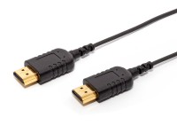 Los cables HDMI sirven para conectar dispositivos digitales modernos. Se trata de una comunicación bidireccional en la que ambos dispositivos (el receptor y el transmisor) intercambian, por ejemplo, información sobre la resolución y la profundidad de color de la señal transmitida. La transmisión HDMI es menos compatible que, por ejemplo,la transmisión sencilla y más robusta delcable SDI; sin embargo, hasta una distancia de 10 metros, el HDMI suele ser fiable. Para distancias más largas, recomendamosun cable HDMI con convertidor óptico integrado(en este caso hay que respetar la dirección de conexión; el conector suele estar marcado en un lado como DISPLAY y en el otro como SOURCE (fuente)).