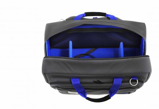 En los bolsillos delantero y trasero se han añadido compartimentos de diferentes formas y tamaños para facilitar el acceso. En el compartimento principal hay un bolsillo de malla con cremallera, una correa para sujetar la cámara y dos separadores extraíbles. Gracias a ello, puedes organizar tu equipo tal y como prefieras.