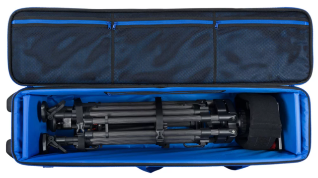 La bolsa camRade tripodBag Lite ofrece una forma práctica y ligera de transportar de forma segura y cómoda un trípode y un cabezal fluido. La bolsa está fabricada con resistente tejido Cordura® negro de 1000 deniers con detalles en azul brillante y proporciona una protección excelente, a la vez que sigue siendo flexible y fácil de manejar. El grueso acolchado en toda la superficie de la bolsa protege tu equipo de los golpes, mientras que las correas internas y las suaves almohadillas de terciopelo con velcro mantienen el trípode en su sitio de forma segura durante el transporte.