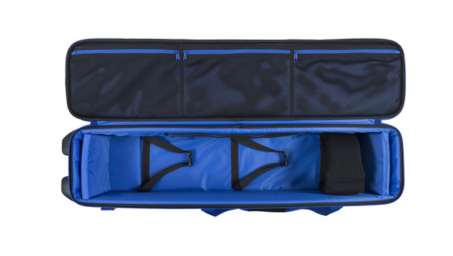El interior está cuidadosamente diseñado con dos protectores para sujetar las cabezas de los trípodes y varios bolsillos grandes con cremallera que proporcionan un espacio de almacenamiento organizado para los accesorios. Se puede acoplar una cesta de malla a las patas del trípode para acceder rápidamente a las herramientas pequeñas. El exterior incluye un bolsillo transparente para documentos que facilita su identificación. Para mayor comodidad durante los viajes, el paquete incluye una correa acolchada para el hombro de ante. Las resistentes cremalleras YKK® y la atención al detalle hacen del tripodBag Traveler un compañero fiable para equipos profesionales y garantizan que tu equipo llegue a salvo y listo para usar.