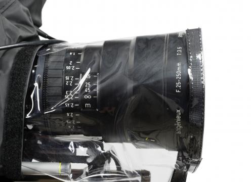 El traje impermeable se suministra con fundas protectoras para objetivos normales y largos, por lo que puede estar seguro de que cualquier objetivo que utilice estará bien protegido. La pantalla del visor está completamente cubierta por una ventana de tela y vinilo, por lo que no entra agua en el traje durante su uso.