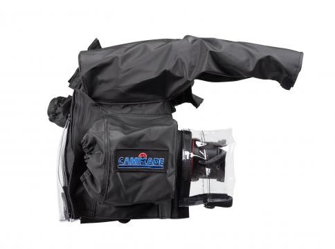 La funda cuenta con ventanas de vinilo transparente que se pueden abrir y cerrar mediante ganchos y presillas, para una visibilidad máxima al ajustar el menú, el nivel de selección de entrada de audio y otros controles.