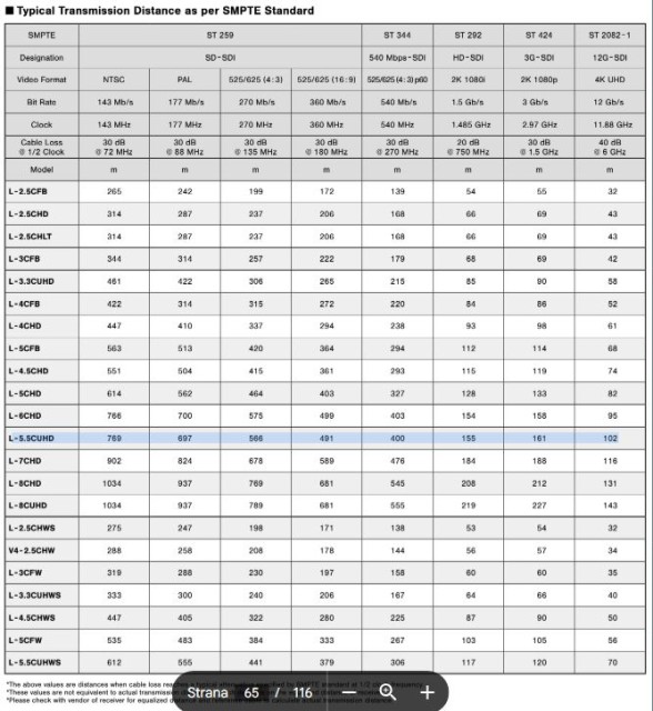 • Atenuación en dB/100 m a 12G-SDI 11,88 Gb/s: 39,1