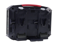 Este cargador de sobremesa de dos canales para dos baterías Gold-mount permite cargar