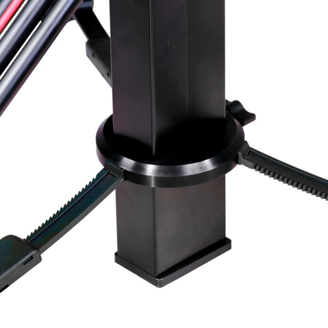 El sistema Lifto 25/S Pro está equipado con un brazo de separación integrado y patas de goma, un soporte de fijación rápida para cámaras PTZ y un anillo de seguridad para fijar la cámara. Se puede montar en un carro ligero Cartoni para desplazarse fácilmente por el suelo del estudio.