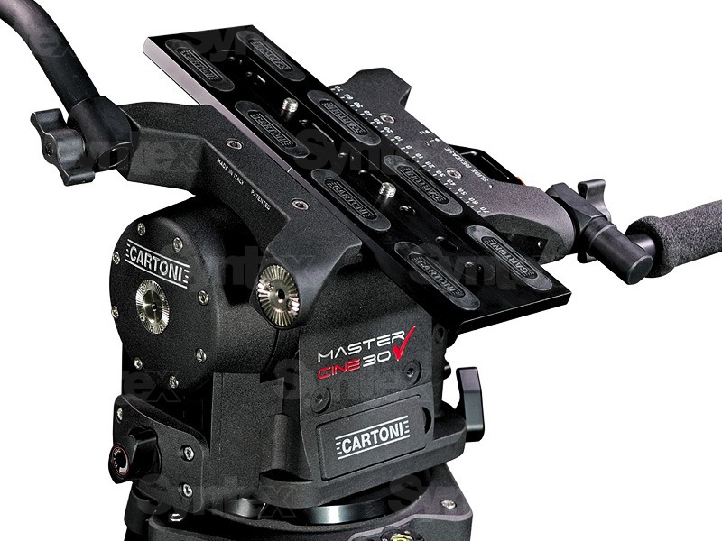 Nueva cabeza fluida diseñada para cámaras de cine digitales. Incorpora todas las últimas innovaciones de Cartoni en el ámbito de la tecnología de soporte para cámaras: mecanismo de freno fluido planetario, movimiento suave en ambas direcciones (pan y tilt), ajuste desde un movimiento casi libre hasta un efecto de freno máximo extremadamente consistente, y arranques y paradas de gran precisión. El ala de equilibrio Cartoni equilibra cualquier carga de cámara de 3 a 40 kg en todo el rango de +/- 90°. La configuración estándar Cine se suministra con una barra telescópica derecha para el giro y un mango delantero izquierdo para el giro. La caja delantera y los soportes para la extensión del ocular son opcionales.