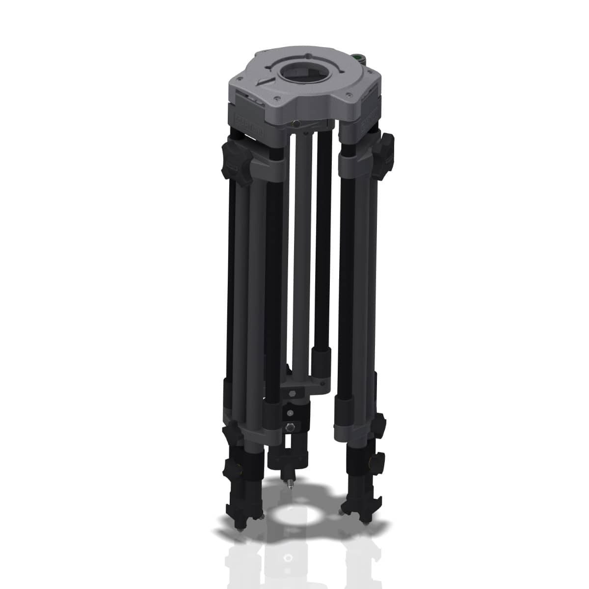 Para reducir el peso total del trípode sin renunciar a la capacidad de carga prevista de 150 kg, todos los botones de bloqueo y las piezas fundidas de las patas están fabricados con una mezcla de alta resistencia de polímeros y fibra de vidrio, lo que ofrece una excelente combinación de capacidad de carga y comodidad durante el trabajo.