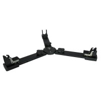 Las puntas de acero están cubiertas por patas de goma ajustables y cada trípode se puede montar utilizando la arandela de separación integrada descentrada o mediante diversas arandelas de separación y guías.