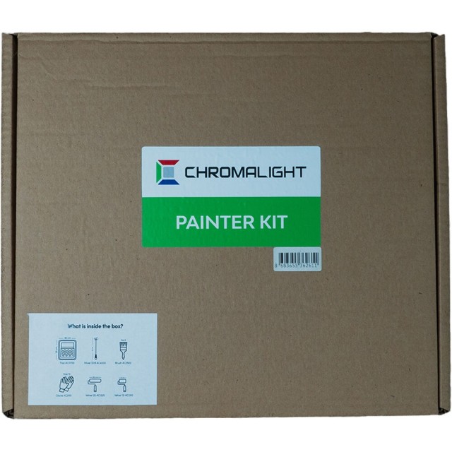 El kit ChromaLight Painter es un conjunto de herramientas de calidad profesional diseñado para una aplicación impecable de la pantalla verde, que incluye rodillos de lana de alta calidad, un pincel, un taladro mezclador y los accesorios esenciales para obtener resultados perfectos con la técnica de croma.