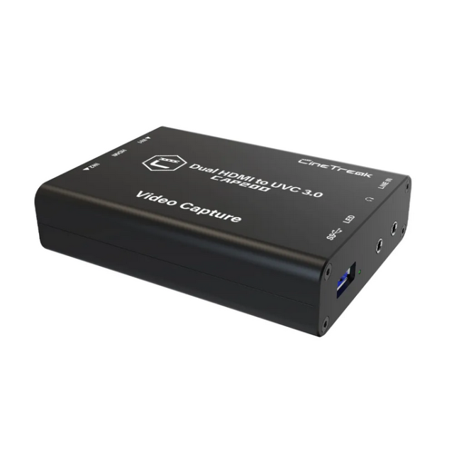 El CineTreak CAP20D es un dispositivo profesional de captura de vídeo con interfaz dual HDMI y USB 3.0 que ofrece opciones de configuración flexibles, funciones de conmutación en tiempo real, compatibilidad con 3D LUT y croma. Ideal para retransmisiones en directo dinámicas, la enseñanza y la creación de contenidos.