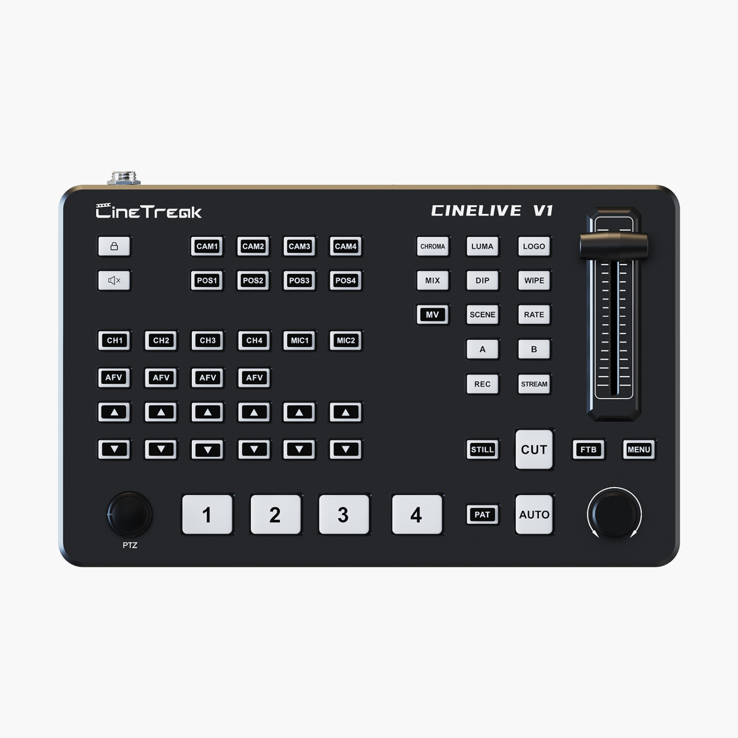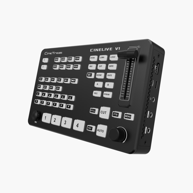 El CineTreak Cinelive V1 es un versátil mezclador para retransmisiones en directo con múltiples cámaras, que cuenta con 4 entradas HDMI, croma profesional, control PTZ, salida UVC y compatibilidad con RTMP, lo que lo hace ideal para la producción en directo, el streaming y la retransmisión de eventos.