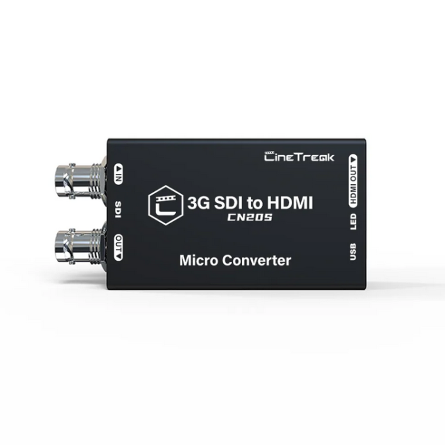 El CineTreak CN20S es un convertidor de vídeo SDI/HDMI profesional con una profundidad de color de 12 bits, compatibilidad con 3D LUT y compatibilidad con formatos cinematográficos. Es ideal para cineastas y cadenas de televisión, y permite un ajuste preciso del color y una conversión adaptativa de la señal con la simplicidad del «plug-and-play».