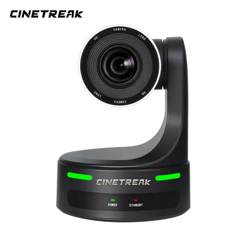 La CineTreak CT-PT12 NDI es una cámara PTZ Full HD de alto rendimiento equipada con un sensor CMOS de 1/2,8", capaz de grabar vídeo con una resolución de hasta 1080p60. Cuenta con un zoom óptico de 12 aumentos y un zoom digital de 16 aumentos, lo que garantiza imágenes nítidas y detalladas incluso a gran distancia, junto con el seguimiento automático para un seguimiento fluido del objeto sin necesidad de control manual.