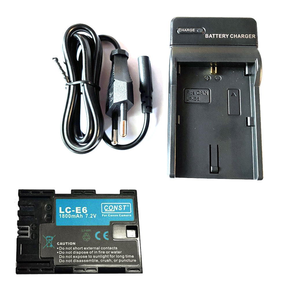 Batería CONST LC-E6 (LP-E6) de 7,2 V y 1800 mAh y cargador monocanal CONST C-E6