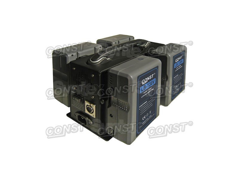 Este cargador de sobremesa de dos canales para dos baterías V-mount permite cargar dos baterías a la vez o se puede utilizar como fuente de alimentación, por ejemplo, para una cámara.