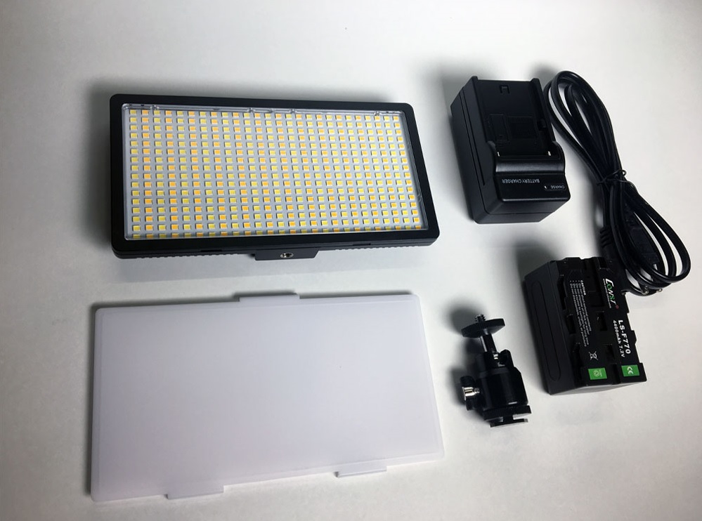 El kit incluye: 1 luz para cámara, 1 batería de iones de litio LS-F770, 1 cargador, 1 filtro suave, 1 zapata