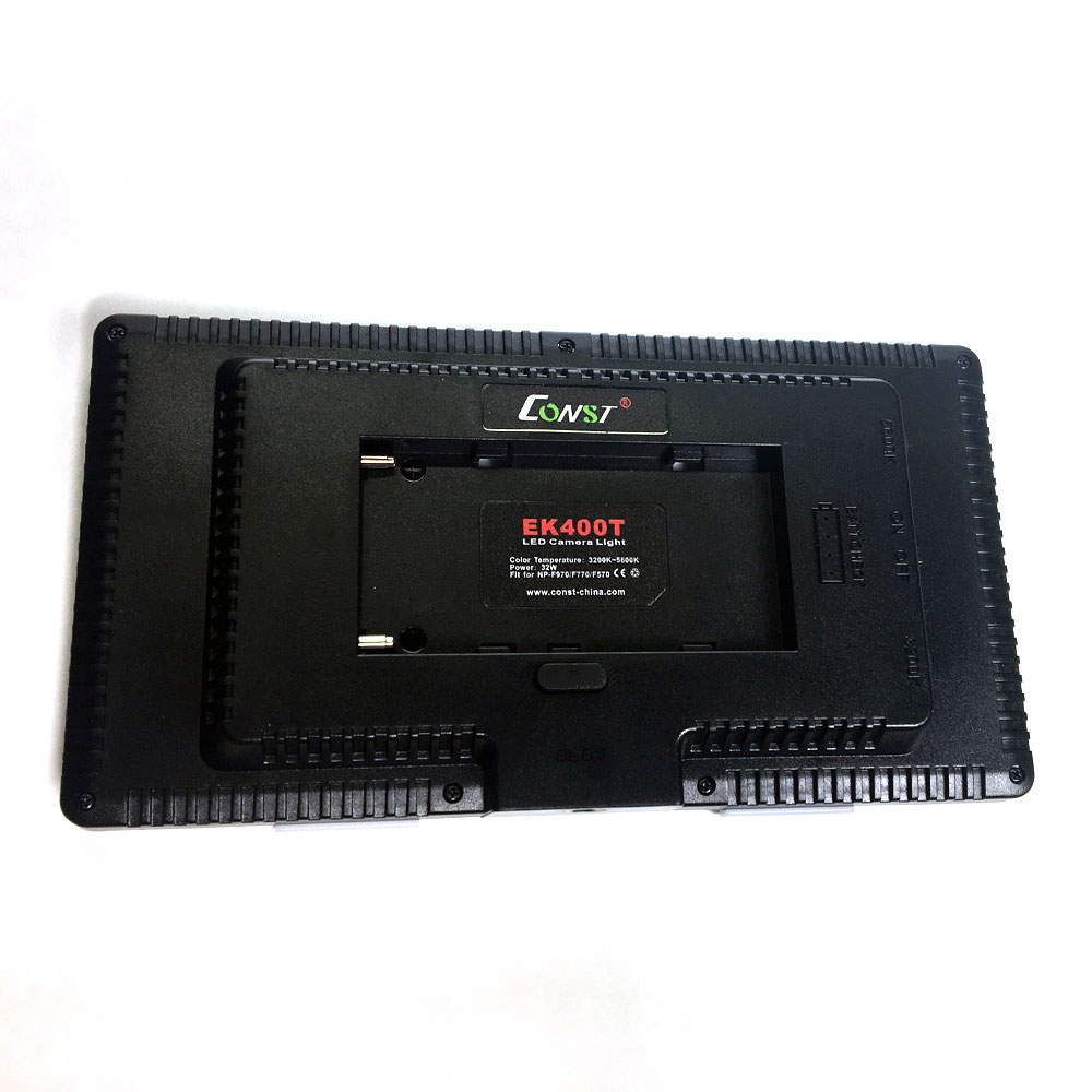 Las lámparas Const EK400T y EK500T Led Soft Light funcionan con una batería recargable tipo NP-F. La intensidad luminosa de la luz es totalmente regulable. Un indicador LED situado en la parte trasera muestra el estado de la batería. Placa guía de luz de acrílico de alta transparencia, de elaborada fabricación. Diseño minimalista, sencillo pero no simple, material esmerilado selecto, acabado de calidad, duradero. Sin deslumbramiento, luz suave: la luz de vídeo utiliza un panel luminoso que proporciona una luz suave sin deslumbramiento. La buena estabilidad del color de salida y la saturación del color hacen que el objeto filmado se acerque más a los colores primarios.