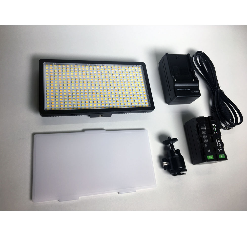 El kit incluye: 1 luz para cámara, 1 batería de iones de litio LS-F770, 1 cargador, 1 filtro suave, 1 zapata