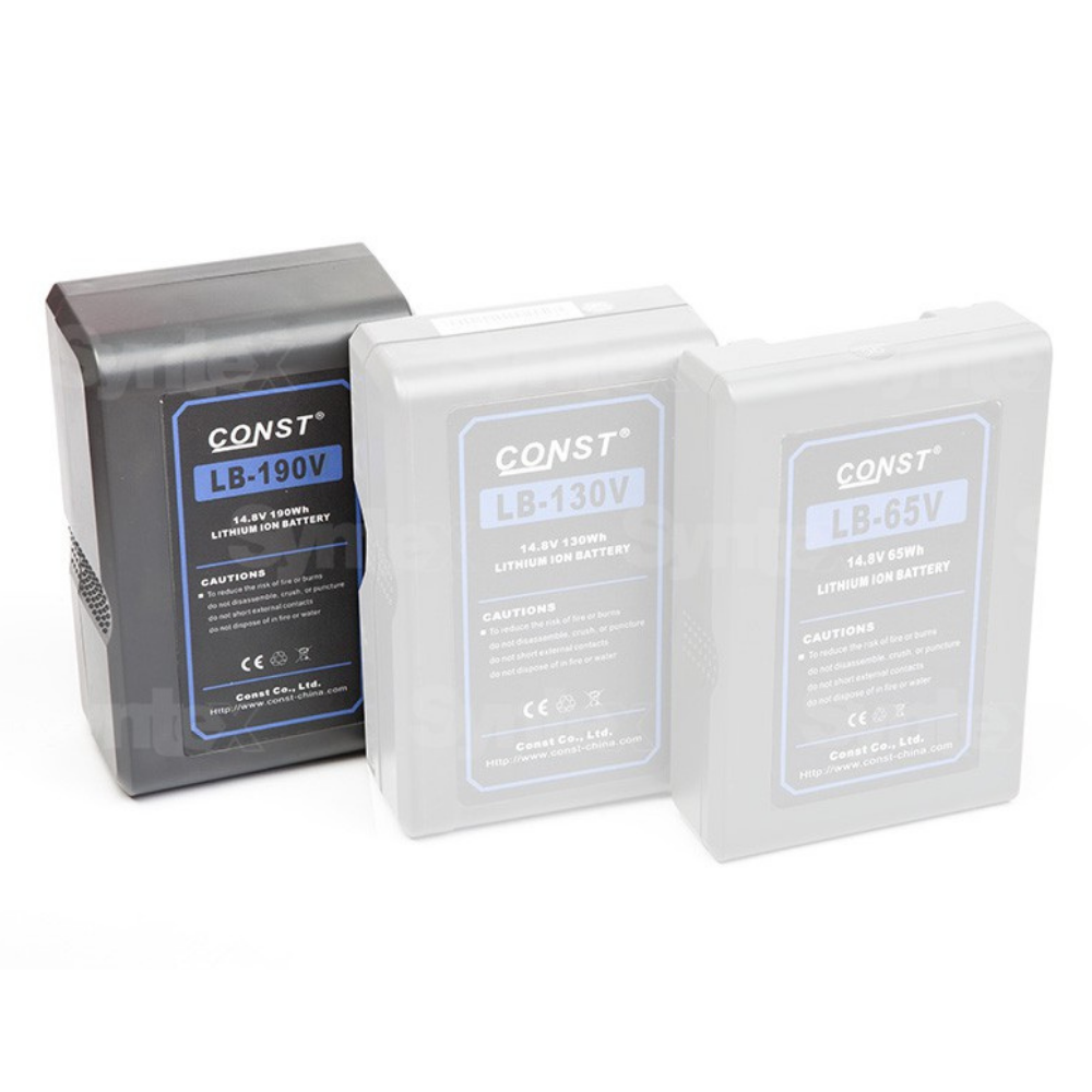 La batería LB-190V, la de mayor capacidad de la gama profesional de baterías de iones de litio CONST con montura V-Mount.