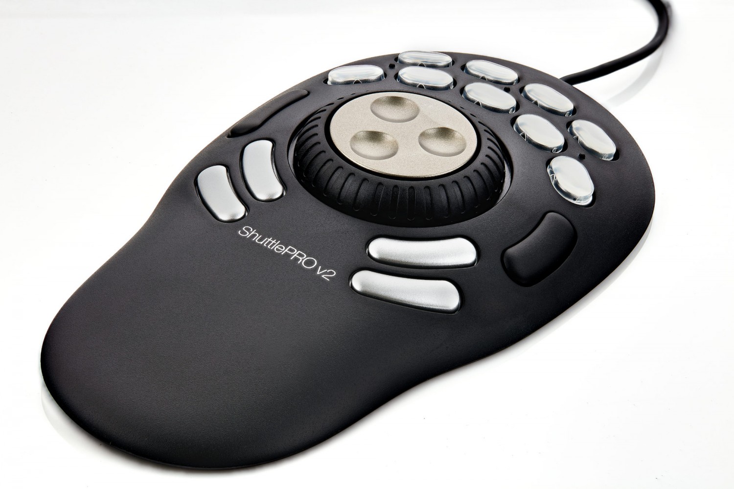 Por fin tienes la posibilidad de controlar tus aplicaciones de vídeo o audio de forma natural. Podrás desplazarte por la línea de tiempo y utilizar las opciones más habituales con gran facilidad. El controlador ShuttlePRO V2 está diseñado para trabajar con flexibilidad en diversas aplicaciones multimedia y es un dispositivo de posicionamiento mucho más natural que el ratón. Además, ofrece la posibilidad de utilizar trece botones para las tareas más habituales. Todo ello agilizará y hará más agradable tu trabajo en tu aplicación de edición, programa de composición o editor musical favorito.