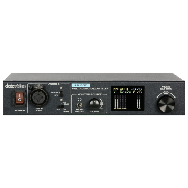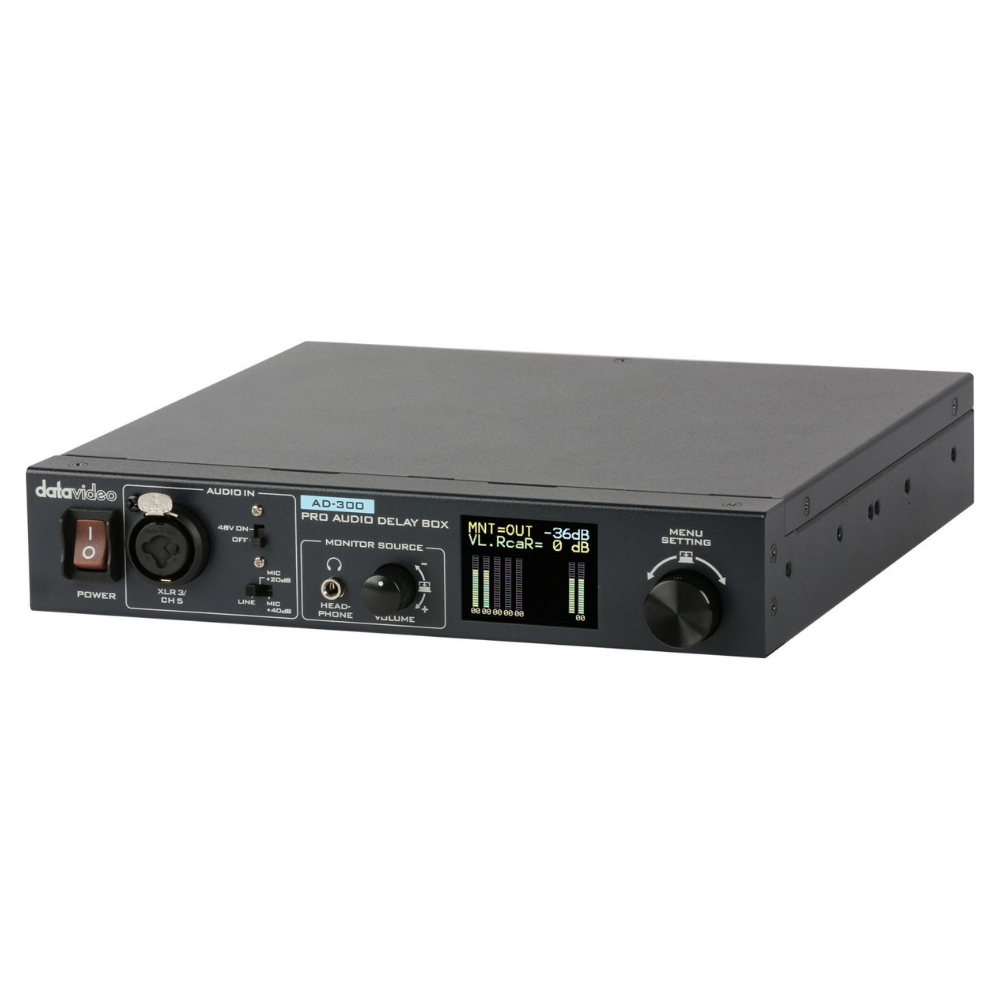 La unidad profesional de retardo y efectos Datavideo AD-300 ofrece una amplia gama de funciones integradas para el procesamiento de sonido y la sincronización de audio y vídeo en producciones en directo.