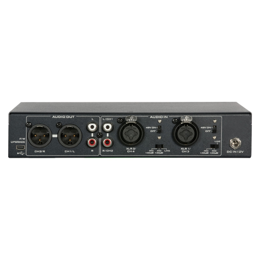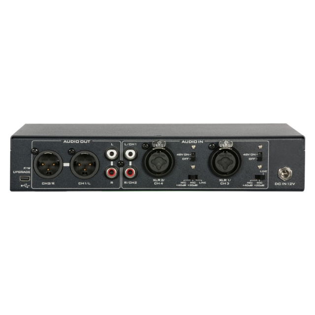 • Salidas de audio: 2 XLR balanceadas, 2 RCA no balanceadas, 1 de auriculares de 3,5 mm