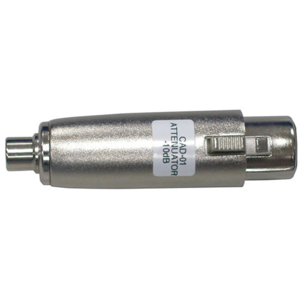 Convertidor de señal de audio Datavideo CAD-01 de XLR balanceado a no balanceado. El Datavideo CAD-01 es un adaptador/atenuador de XLR a RCA. Este adaptador permite atenuar el sonido procedente de una fuente balanceada y transmitirlo a un dispositivo de audio no balanceado a través de un conector RCA (cinch).
