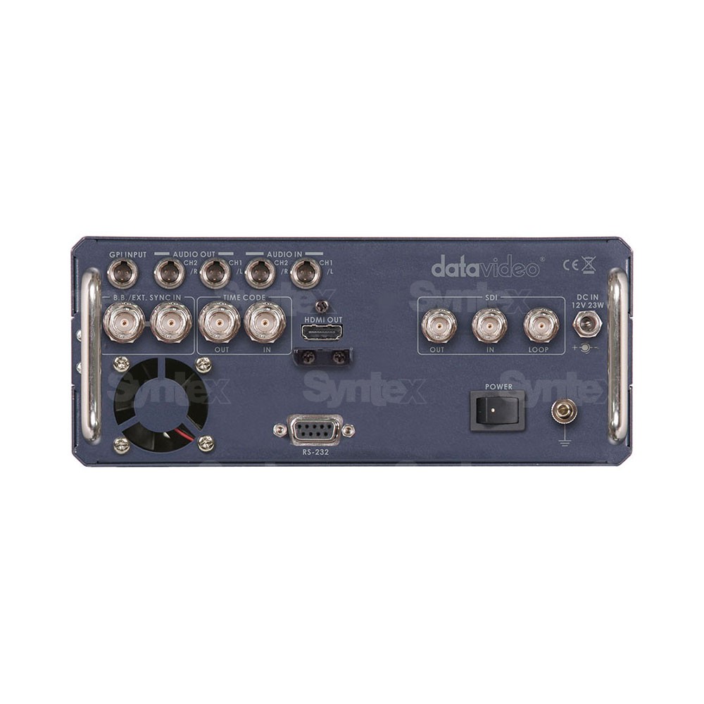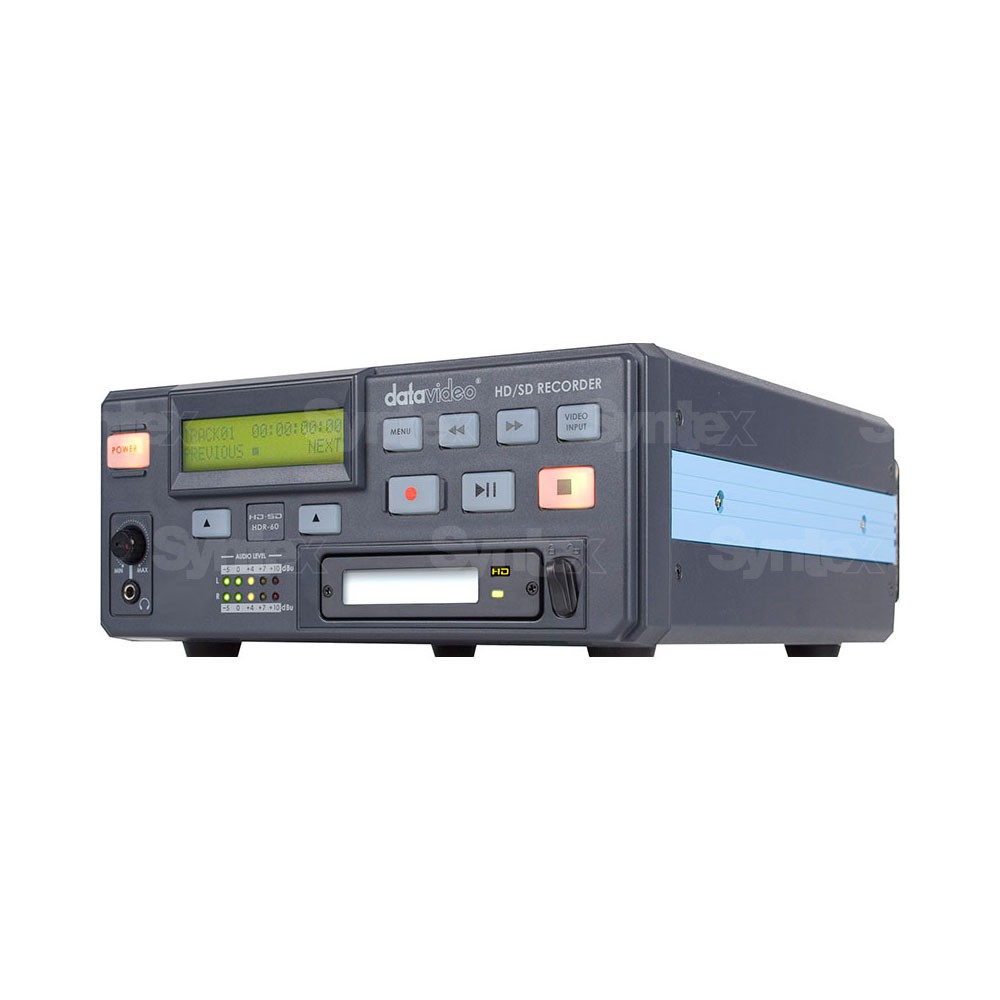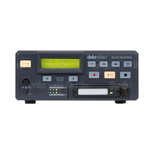 Los Datavideo HDR-60/HDR-70 son grabadores de vídeo de estudio que graban en discos duros extraíbles en formatos MXF/OP1A y MOV. En HD, la grabación se realiza a una velocidad de hasta 80 Mbps en Long GOP 4:2:0 o 4:2:2, y de hasta 100/120 Mbps en i-frame 4:2:2 con 8 bits. El dispositivo graba vídeo SD y HD desde fuentes HD/SD-SDI (incluido el audio incrustado) en discos ubicados en una bandeja especial, que se puede extraer fácilmente y conectar a ordenadores mediante USB 2.0. El dispositivo es compatible con discos SSD. Una vez finalizada la grabación, basta con extraer la bandeja y conectarla a un ordenador mediante la interfaz USB 2.0, desde la que también se alimenta el disco. ¡Esto resulta muy práctico, por ejemplo, para trabajar con un portátil sobre el terreno! Para un uso exclusivamente en estudio, se ofrece la variante HDR-70 para montaje en rack.
