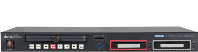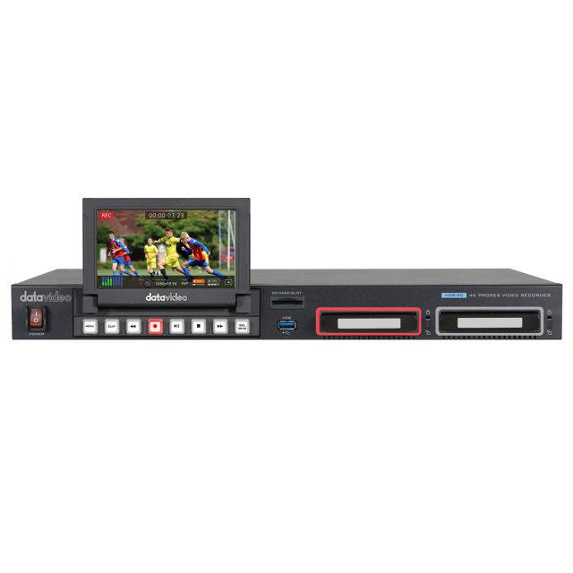 El Datavideo HDR-90 es un grabador de vídeo en rack con pantalla LCD que controla y gestiona archivos de datos ProRes 4:2:2 de 10 bits. El HDR-90 admite entradas y salidas UHD 12G SDI y 4K HDMI, así como DVIP (Ethernet), GPI y RS-232.