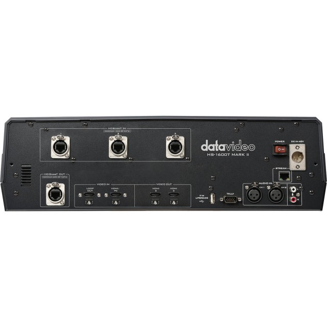 Datavideo presenta la última versión de su estación de trabajo más vendida, la HS-1600T Mark II. Esta versión Mark II incluye varias mejoras con respecto a la versión estándar. La entrada HDMI cuenta ahora con una salida pasante. Así, al conectar un ordenador o una consola de videojuegos, puede disponer de una pantalla más grande en su escritorio para ver mejor esta entrada. Esto resulta especialmente útil al trabajar con subtítulos o cualquier otra tarea que requiera una concentración absoluta. La conexión a una pantalla o un proyector mediante HDBaseT es ahora más sencilla que nunca. La salida HDBaseT integrada permite conectar cualquier dispositivo terminal con una longitud máxima de cable de 60 m y una resolución de hasta 1080p60. En cuanto a la transmisión, se ha añadido la transmisión dual, por lo que ahora puedes utilizar dos plataformas de transmisión populares directamente desde el dispositivo, siempre que dispongas del ancho de banda necesario. Datavideo sigue recomendando utilizar su servicio de transmisión dvCloud para transmitir a varios destinos a la vez, ya que así puede utilizar SRT en la nube y garantizar una imagen perfecta con baja latencia, incluso cuando el ancho de banda sea limitado.