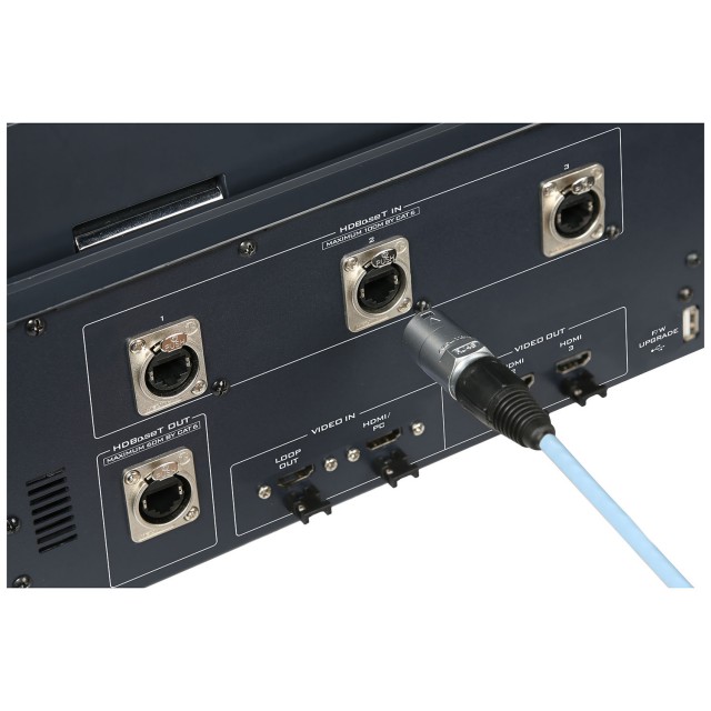 La tecnología HDBaseT integrada permite recibir señales de 1080p de tres cámaras PTZ HDBaseT PTC-150TL o PTC-140T a través de un cable CAT6. Está equipado con tecnología PoE para alimentar las tres cámaras PTC-150TL o PTC-140T, por lo que la instalación es rápida y sencilla. Sin perder la facilidad de uso, basta con pulsar un solo botón para transmitir simultáneamente a su red CDN preferida y grabar en una tarjeta SD.