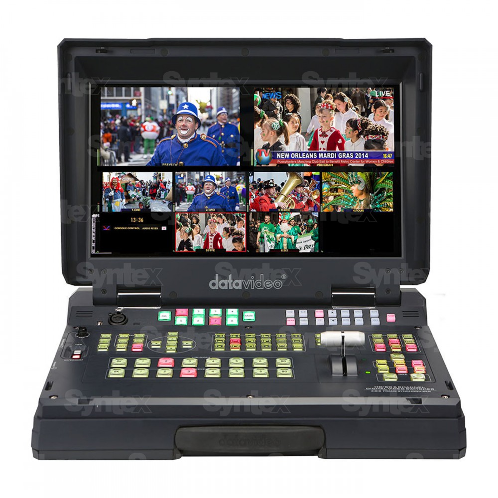 El Datavideo HS-2200 es una unidad de control portátil de seis canales, con diseño tipo maletín, que cuenta con interfaces HD-SDI y HDMI y admite resoluciones de hasta 1080i. Incluye una pantalla de 17,3 pulgadas, un generador de subtítulos integrado, un intercomunicador de ocho canales, la función de imagen en imagen, cuatro luces de señalización (tally), limpiaparabrisas, clave de luma y otras funciones...