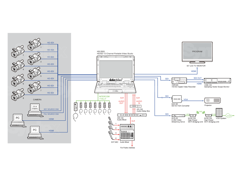 Estudio de vídeo portátil HD/SD de 8/12 canales