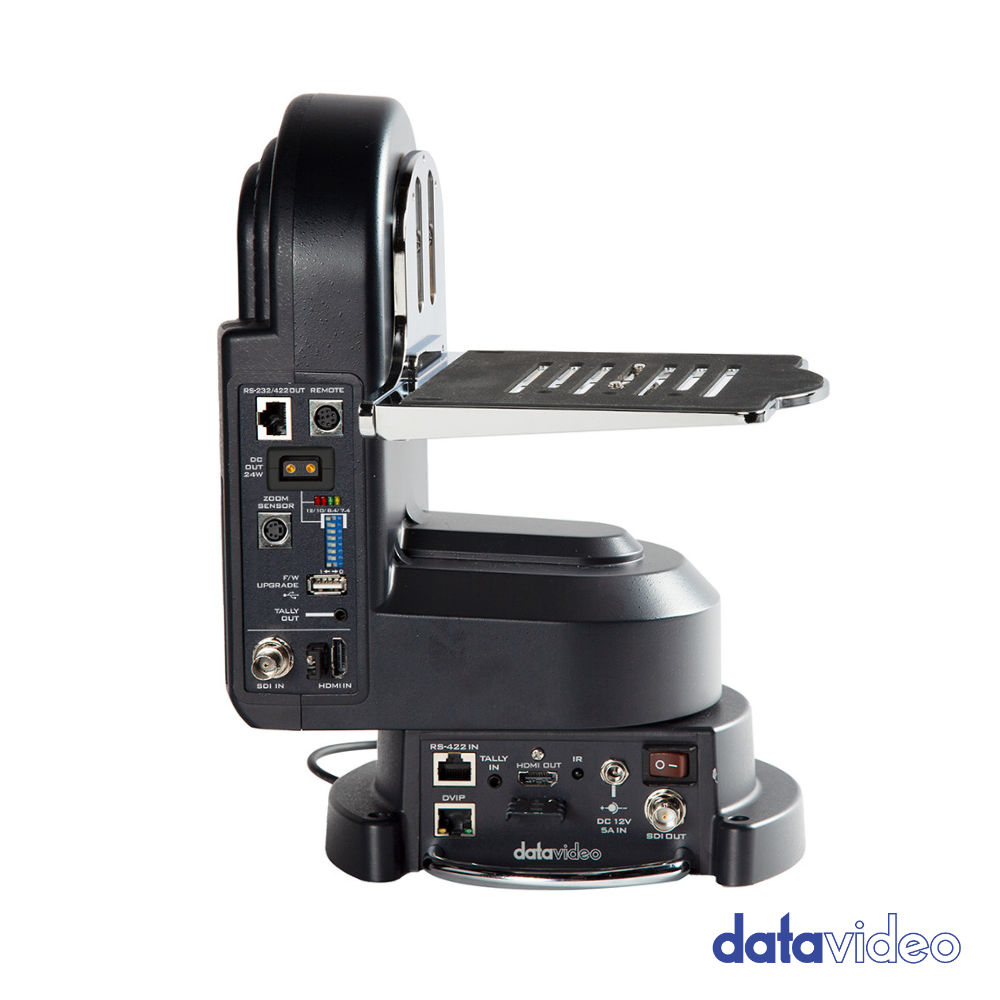 Cabezal profesional de giro/inclinación para cualquier cámara de hasta 4 kg. Ofrece conexión HDMI/SDI. Control mediante DVIP, VISCA o IR de Datavideo, Pan: 340°/Inclinación ± 45°, 50