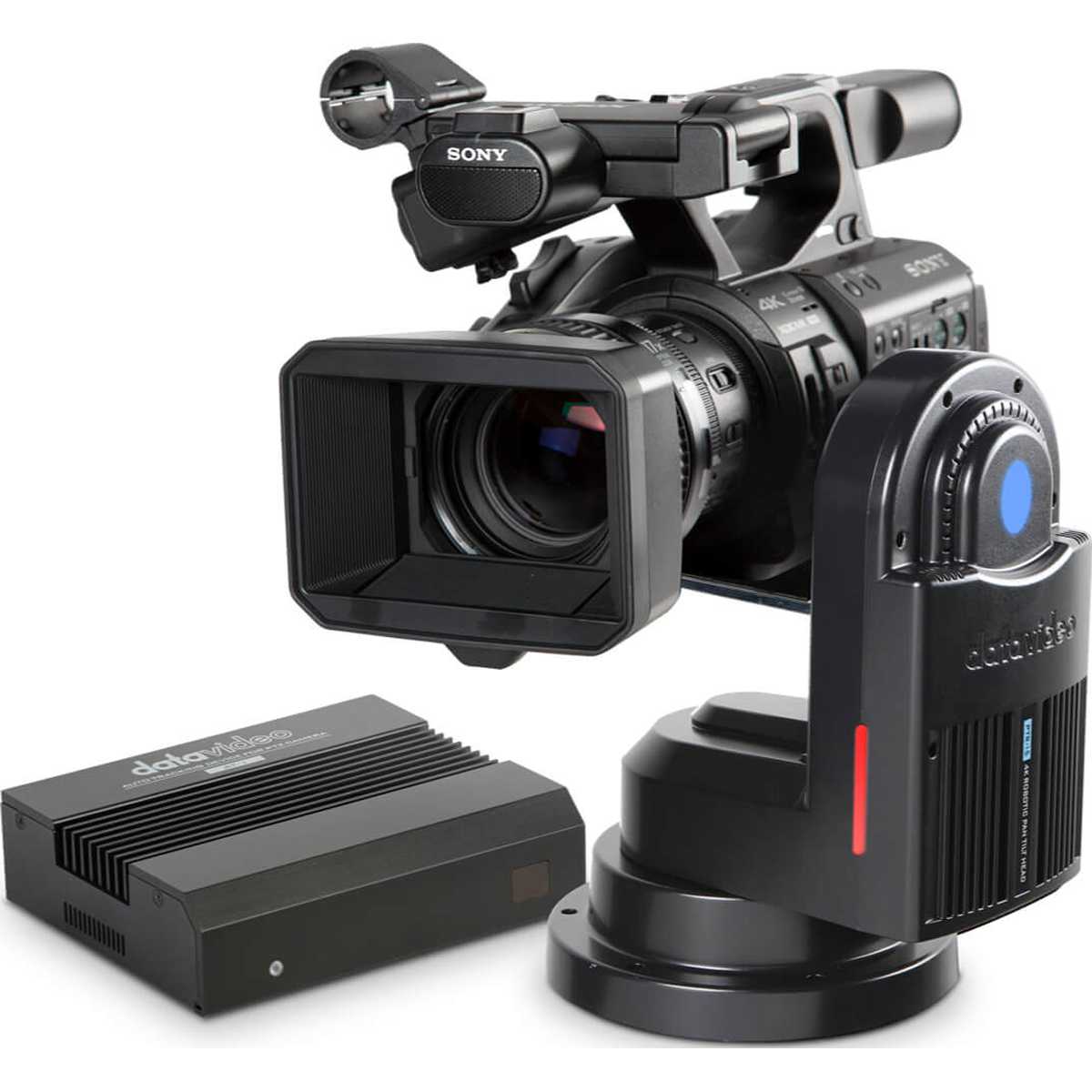 Variante PTR-15 con HDBaseT UHD. La Datavideo PTR-15 es una cabeza de cámara robótica 4K 12G-SDI con tecnología FreeD. Utiliza un eficaz sistema de control para lograr movimientos de cámara fluidos y precisos, y se puede emparejar con la mayoría de los modelos de cámaras de broadcast para controlar a distancia el giro, la inclinación, el zoom y la apertura del diafragma. El modelo PTR-15 está equipado con la función integrada de seguimiento virtual FreeD, que utiliza tecnología de visión artificial para reconocer y seguir la posición y los movimientos del sujeto filmado. El modelo PTR-15 se puede controlar mediante un mando a distancia por infrarrojos, el protocolo VISCA, el controlador Datavideo RMC-180 MARK II, el panel de control remoto universal RMC-300A y es compatible con conexiones serie y Ethernet (DVIP). El PTR-15 cuenta con una amplia gama de interfaces de señal para una integración sin problemas, incluyendo SDI, HDMI, RS-232, RS-422, DVIP, Tally (señalización) y LANC.