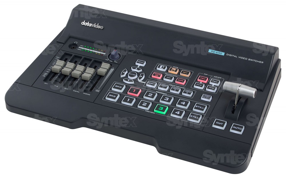 La Datavideo SE-650 es una unidad de control HD profesional y miniaturizada con una excelente relación calidad-precio, que cuenta con dos entradas HD-SDI y otras dos HDMI, dos salidas HDMI y una salida HD-SDI. El monitor que se muestra no está incluido en el suministro.