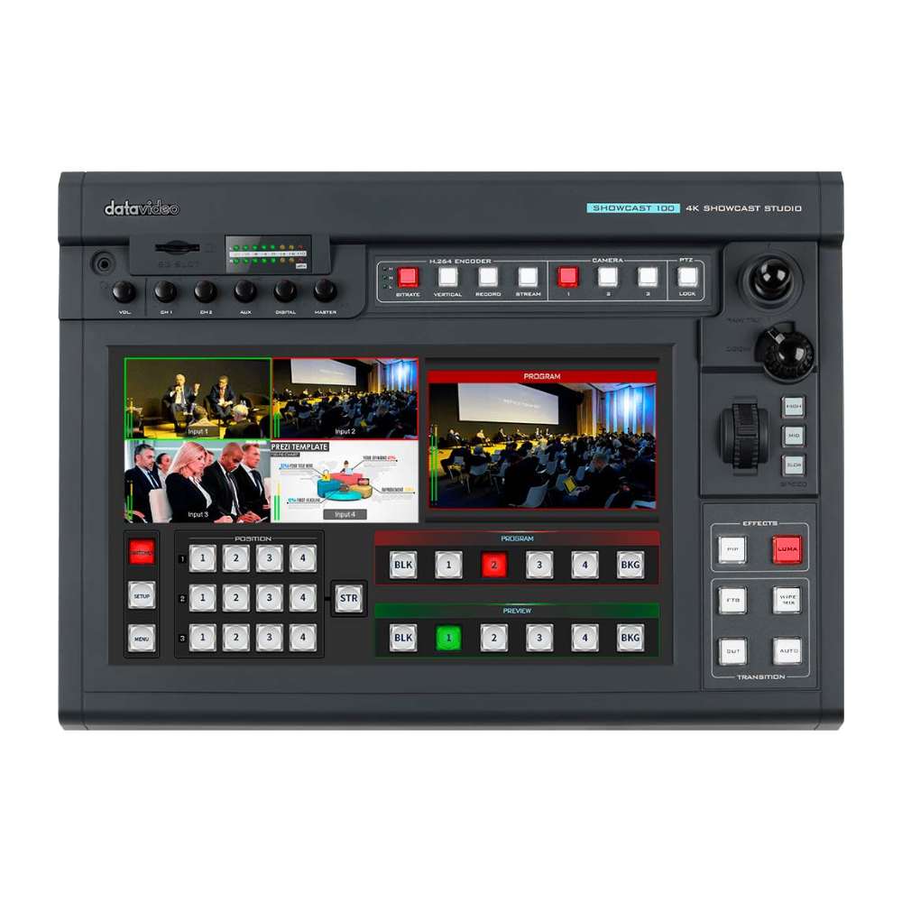 La mesa de regiduría 4K de cuatro canales Datavideo ShowCast 100 ofrece una pantalla táctil integrada de 14 pulgadas para gestionar fácilmente cuatro fuentes de vídeo HDMI, efectos de texto y gráficos, control remoto de cámaras, retransmisión en directo, mezcla de audio y grabación de vídeo H.264 en tarjeta SD. A la venta a partir del 6 de julio de 2022.