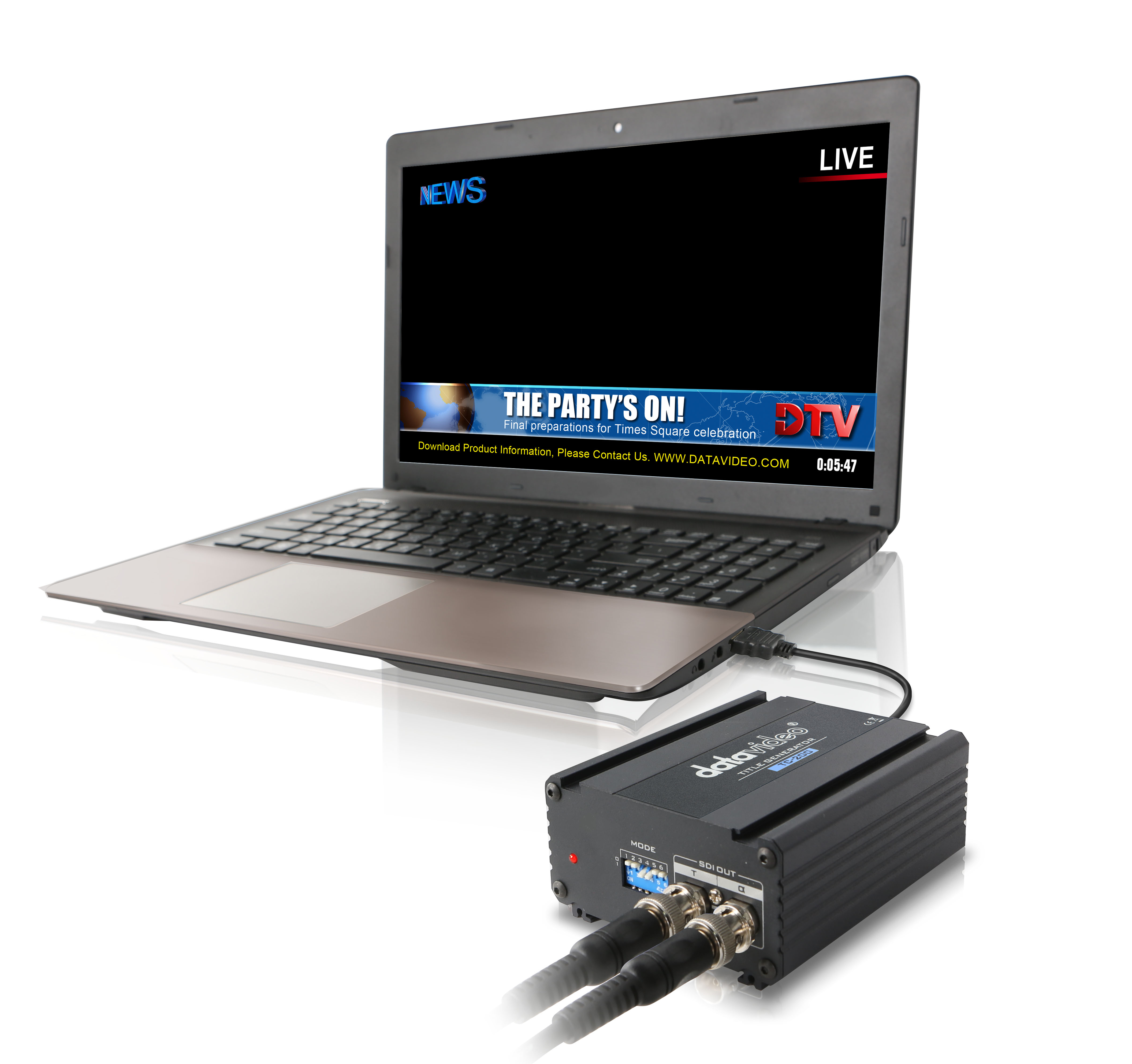 El uso de superposiciones de CG en las retransmisiones en directo solía ser complicado, ya que requería grandes ordenadores robustos con tarjetas de salida especiales para dividir la señal de salida en diferentes canales. Datavideo lanza ahora al mercado una solución muy compacta, fiable y asequible: el TC-200. ¡Permite utilizar cualquier portátil con salida HDMI para transmitir grafismos a la emisión! Requiere Windows 7 u 8.