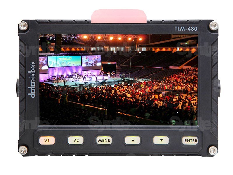 El Datavideo TLM-430 es un monitor de previsualización de 4,3 pulgadas, ideal como visor de cámara. Además de alimentación por batería y dos entradas compuestas, el monitor TLM-430 cuenta con un gran indicador luminoso TALLY bicolor para facilitar la comunicación con el estudio y el operador de cámara.