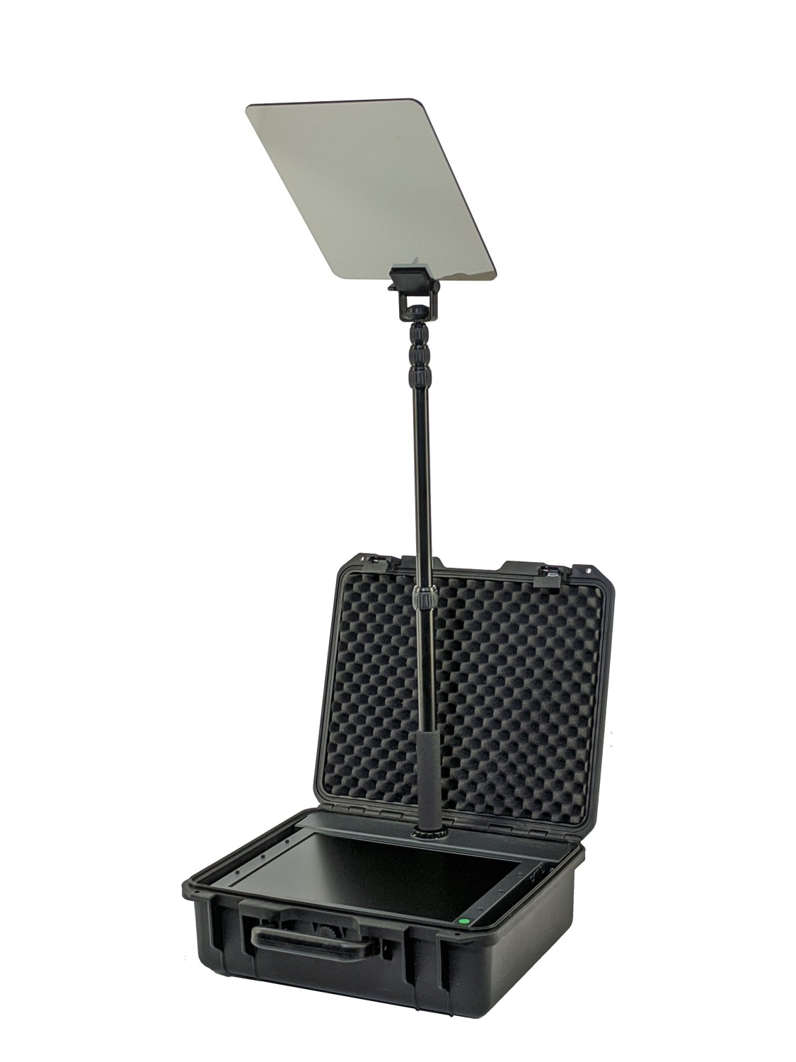 El TP-800 es un dispositivo de lectura portátil y fácil de usar, integrado en un maletín rígido. Es el compañero ideal para presentaciones, conferencias, congresos, etc. El soporte incorporado permite ajustar la altura (45-161 cm) y el ángulo de visión, y la pantalla LCD integrada de 15” y formato 4:3 se puede proteger de la luz ambiental mediante una visera lateral. La alimentación se proporciona mediante el adaptador de red de 12 V= incluido o una batería V-Mount opcional. El dispositivo utiliza la aplicación dvPrompter Plus y no requiere un ordenador portátil adicional para su funcionamiento; sin embargo, si es necesario, también puede utilizarse con aplicaciones de otros fabricantes gracias a la entrada HDMI o con pantallas externas mediante la salida HDMI. El dispositivo de lectura se controla mediante una moderna aplicación web dentro de una red Ethernet local, lo que incluye la importación de textos, la configuración de fuentes (color, tamaño, tipo, etc.), la inserción de imágenes y la creación de listas de reproducción...