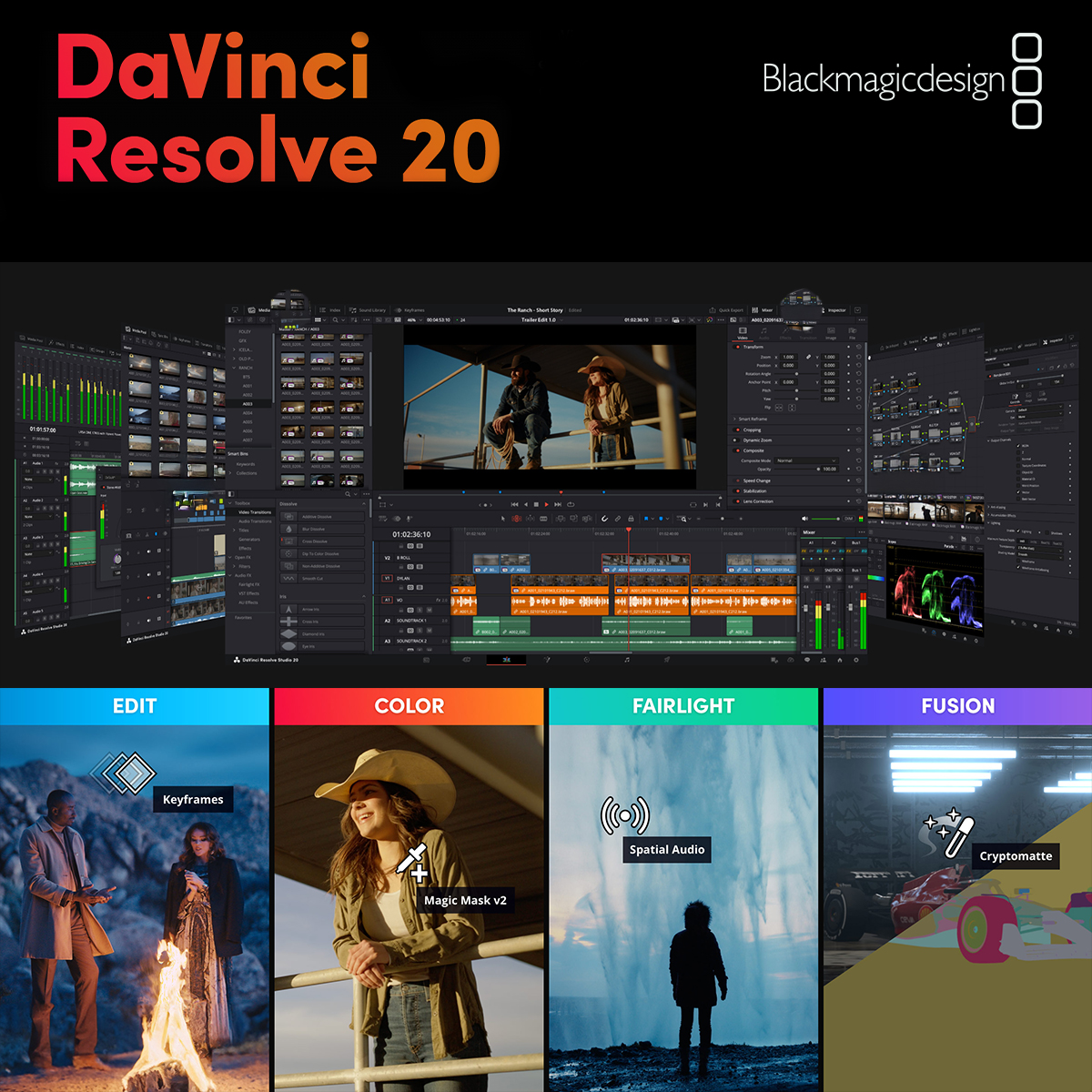 ¡Blackmagic Design ha lanzado la versión beta pública de DaVinci Resolve 20! Esta importante actualización incluye más de 100 nuevas funciones que te ayudarán en todas las fases de tu flujo de trabajo. Las nuevas funciones incluyen una serie de potentes herramientas que utilizan IA. Entre ellas se encuentran, por ejemplo, AI IntelliScript para crear una línea de tiempo a partir de un guion de texto, AI Animated Subtitles para animar las palabras según se pronuncian y AI Multicam SmartSwitch para crear una línea de tiempo con tomas basadas en la detección de los interlocutores (según el sonido y la imagen).