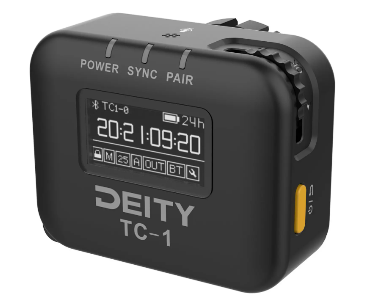 Cada TC-1 está equipado con una pantalla OLED brillante para una rápida confirmación visual del estado de sincronización y los ajustes. El puerto de código de tiempo de 3,5 mm con cierre de seguridad proporciona una conexión física segura, mientras que el micrófono omnidireccional integrado permite grabar rápidamente notas de audio cuando sea necesario. Con una autonomía de hasta 28 horas con una sola carga, el TC-1 es ideal para grabaciones de todo el día sin interrupciones.