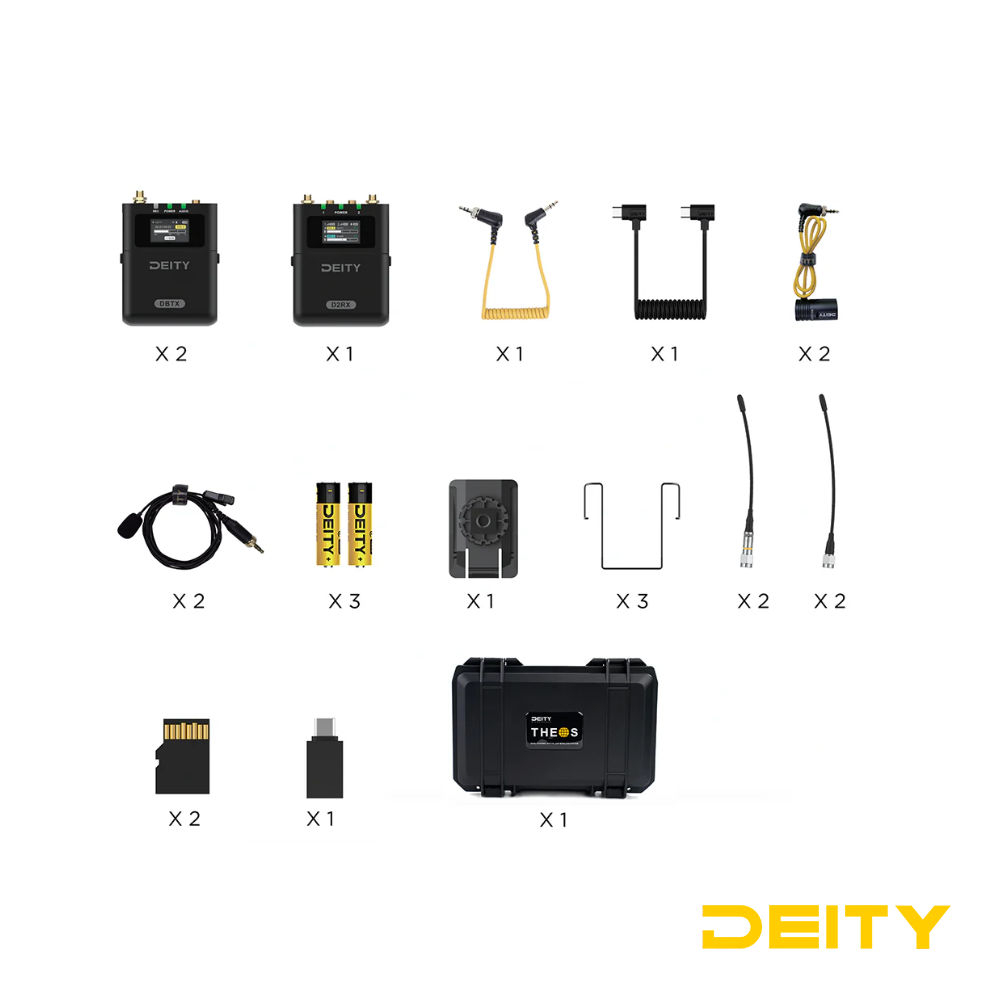 El sistema de micrófonos inalámbricos digitales Deity Theos es un dispositivo de última generación diseñado para cineastas. Funciona en un amplio espectro UHF, en el rango de 550 a 960 MHz, ofrece un sonido cristalino y reduce el riesgo de interferencias. El sistema está equipado con un receptor compacto de dos canales con chasis de aluminio CNC y antenas SMA desmontables para facilitar su transporte. Los receptores también cuentan con un TCXO integrado para un código de tiempo preciso, con la posibilidad de sincronizar el código de tiempo de forma inalámbrica mediante el generador de código de tiempo Deity TC-1.