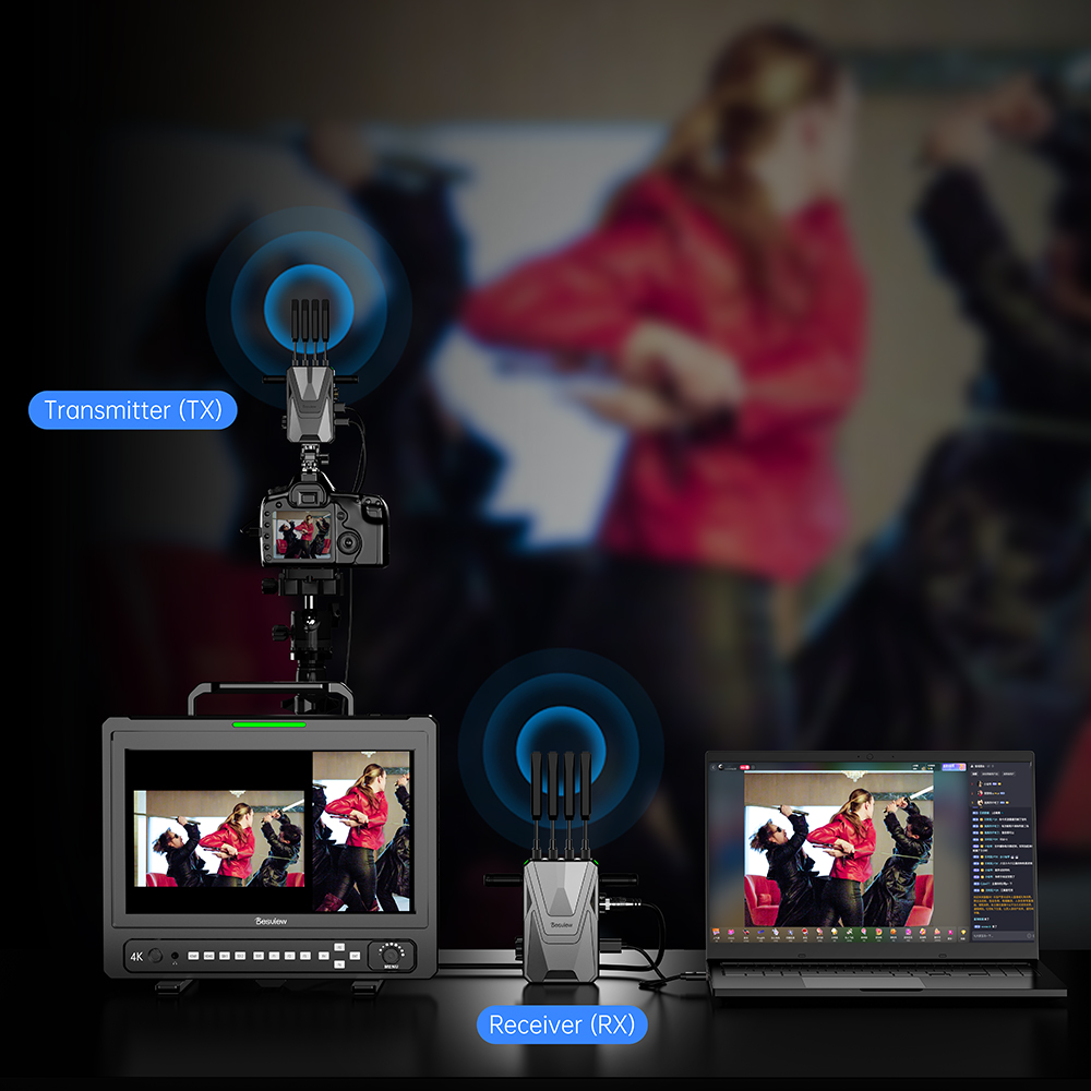 Transmisor y receptor de vídeo inalámbrico profesional Desview Atlas X 4K TX/RX para una transmisión fluida de imágenes 4K a larga distancia sin retrasos. Ideal para cineastas, retransmisiones y eventos en directo. Referencia: des-AtlasX4K-TX/RX. Diseño robusto, fácil de usar y rendimiento fiable. Mejore su producción con esta solución inalámbrica de última generación.