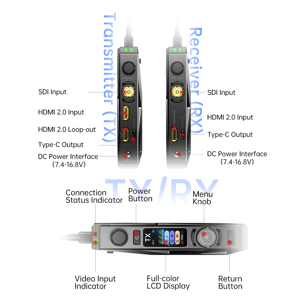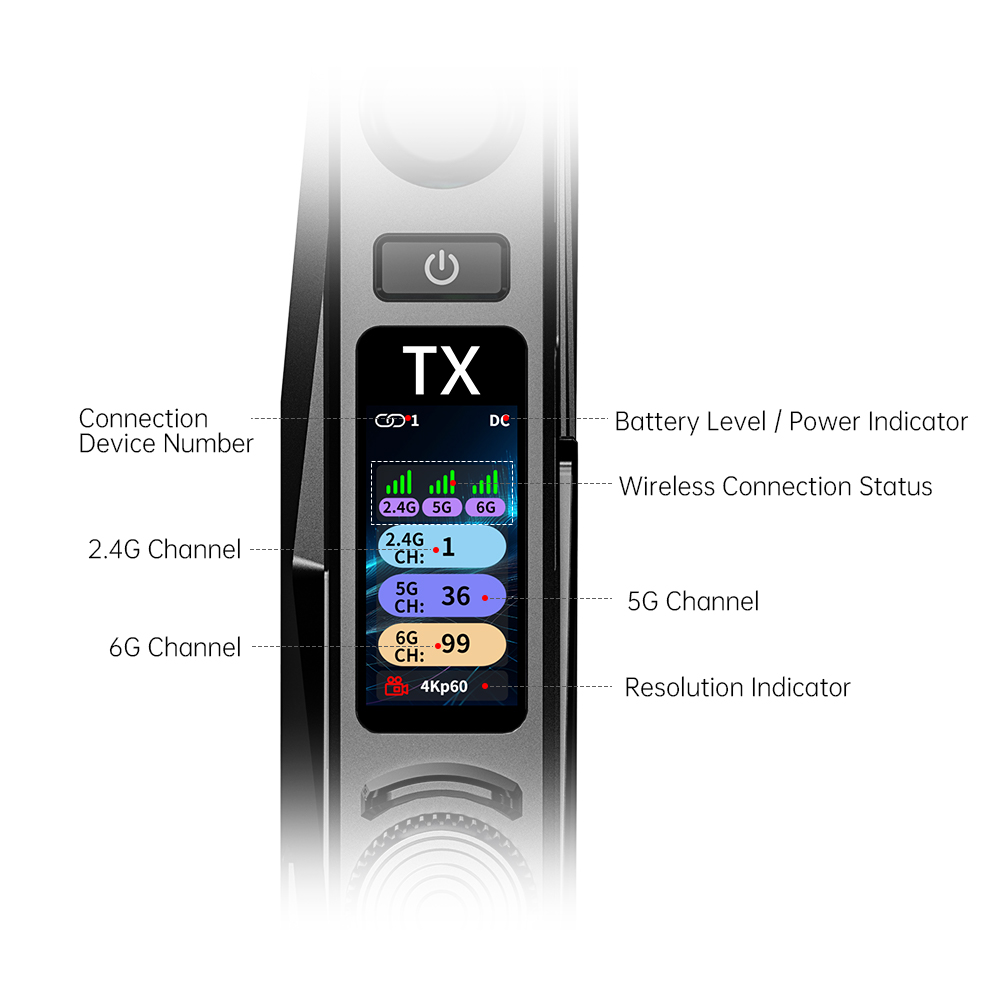 | Pantalla LCD a todo color de 1,05 pulgadas Muestra el estado de la señal, la banda del canal y el nivel de batería en tiempo real; todos los datos se visualizan en pantalla para una configuración más rápida. |