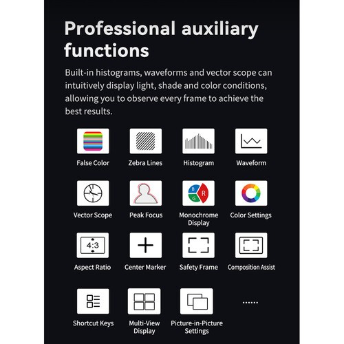 El monitor D17-HDR, diseñado para flujos de trabajo de producción versátiles, admite entradas HDMI 2.0, 3G-SDI y USB con vídeo de hasta una resolución de 4K60 y ofrece salidas HDMI y SDI para distribución en paso o externa. Los modos multivisión avanzados permiten la monitorización en dos, tres y cuatro pantallas, junto con la función de imagen en imagen. Herramientas profesionales como la forma de onda, el histograma, los colores falsos, el enfoque y la zebra ayudan a precisar la exposición y el enfoque. El monitor admite modos de visualización tanto horizontales como verticales, por lo que es adecuado para formatos tradicionales de emisión y redes sociales. El Desview D17-HDR está alojado en una resistente carcasa protectora de aluminio y ofrece opciones de alimentación flexibles, incluyendo batería V-mount, CA y XLR de 4 pines, y es una solución fiable para la monitorización en plató y en estudio.