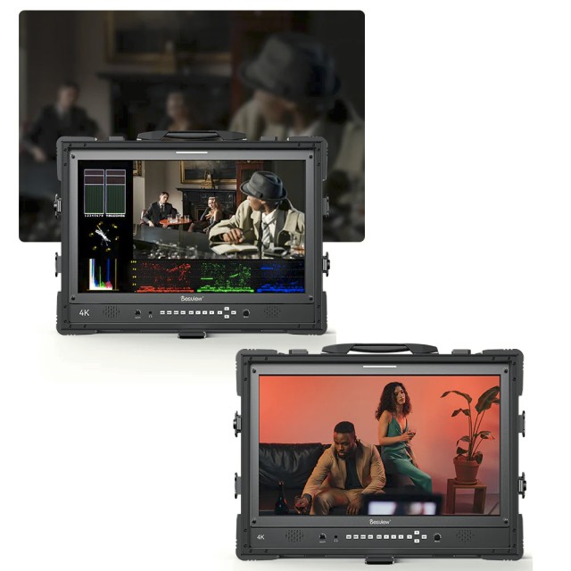 El monitor D24-HDR, diseñado para entornos de producción avanzados, admite la visualización en múltiples pantallas con orientación horizontal y vertical, lo que le permite adaptarse a diversos escenarios de rodaje. Ofrece tres entradas HDMI 2.0 y una salida HDMI con soporte para 4K a 60 Hz, junto con una entrada y salida SDI profesional para la transmisión de señal con calidad de broadcast. Las herramientas integradas de monitorización de forma de onda completa, histograma y vectoscopio permiten un control preciso de la exposición, el color y la calidad de la imagen. El Desview D24-HDR está equipado con un sistema de luces de control frontales y varias opciones de alimentación, incluyendo batería V-mount, alimentación de red y entrada XLR, lo que lo convierte en una solución robusta para directores, técnicos y equipos de producción.