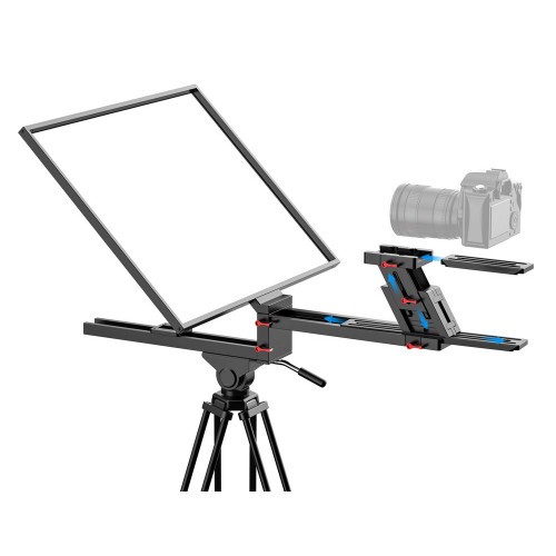 El teleprompter Desview DT22-P Dual Screen está equipado con dos monitores de alta resolución de 22 pulgadas y un cristal divisor de haz en una proporción de 70/30, lo que permite a los presentadores mantener un contacto visual natural con la cámara mientras leen el guion. Incluye un mando a distancia inalámbrico y un pedal con cable, y es ideal para retransmisiones en estudio, retransmisiones en directo, entrevistas y producción de vídeo profesional, ofreciendo un rendimiento fiable tanto en interiores como en exteriores.