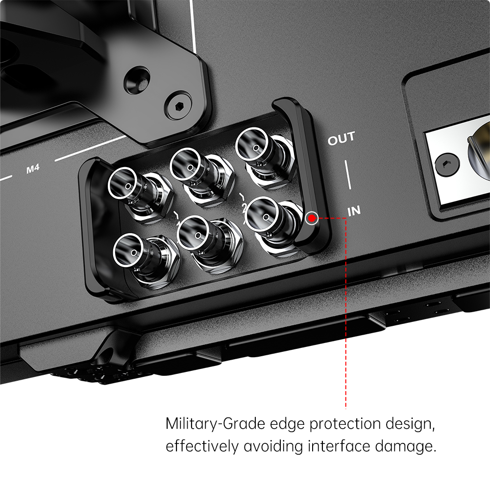 Interfaz SDI profesional Ofrece entrada/salida SDI de tres canales, lo que garantiza flexibilidad y variedad para tu creación, se conecta fácilmente a múltiples dispositivos y libera posibilidades creativas ilimitadas. Su diseño con protección de bordes de calidad militar evita eficazmente que la interfaz sufra daños.